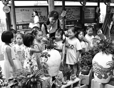 新学期以来,建德市航头中心幼儿园的孩子们每周都会参加一次“农趣活动日”。该园教师带领孩子们参观植物角里利用木桩、酒坛、瓶罐、塑料管等废弃物品栽培的绿芦、茉莉花、杜鹃花、幸福树等植物,了解它们的生长特点、种植方法。