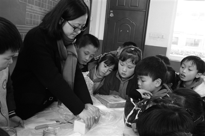 为培养学生的兴趣爱好和动手能力,湖州市戴山学校开设了“糕点制作”校级拓展课程,图为教师指导学生用米饭、黄瓜、海苔、肉松等食材制作寿司。