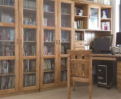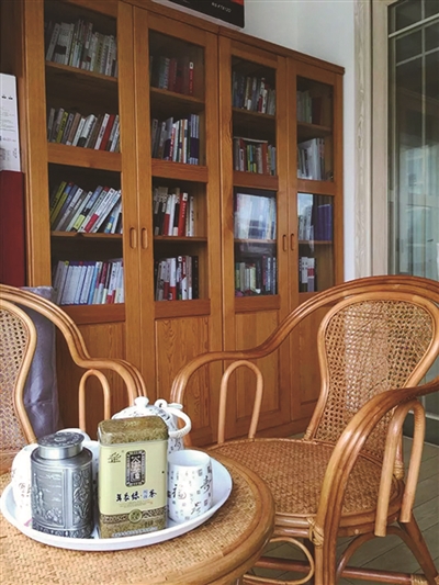 我和先生都喜欢读书,两个人因书结缘,书成了我们生活中不可缺少的一部分。 2012年我们搬进新家,家里添置最多的家具就是书架,我们单独开辟出一个房间作为书房,几大箱子的藏书终于也有了自己的“家”。 两个双开门的实木书架搭配转角书桌,一把实木椅,这就是书房的全部装备。“静能生慧,善以养德”,我们给书房起名“静善居”。 有了自己的书房,有了读书的阵地,我们读书的热情高涨,花在读书上的时间更多了。书柜开开合合,一本一本的书带着墨香,被我们捧在手上。夜深了,书房的灯依然亮着,点滴生活的记录、工作的心得感受从笔尖流到纸上。 不断购置的新书越来越多,书架已经满满的,于是阳光房也被我们利用上了。这个三面玻璃的房间里,放置了两个双开门书柜、两把藤椅和一个藤茶几。午后阳光正好的时候,我们常在这里品茶、会友、读书。茶香、书香,萦绕在整个房间,我们给它取名“品香台”。 孩子渐渐长大,我们经常带着他一起读书,也经常带他去图书馆和书店。家里的书又开始多了起来,家里的书又“无家可归”了。我们又陆续添置了一个实木开放书架和一个旋转书架,把它们安置在客厅的两边。 开放书架全部放孩子的书,随手可取。我们让孩子自己负责布置和整理,让阅读成为孩子生活的一部分。旋转书架放我和先生最近常看的书籍。每个安静的夜晚或是美好的周末,我们都和孩子一起享受阅读的时光,一家人在这里畅游书海,悠然自得。于是,“悠然厅”便得名了。 每个卧室的床头或柜子上,都放几本书,方便睡前阅读。如此一来,无论到家里的哪个房间,都能看到书,都可以随手拿来读。 在我们的带动下,孩子爱上了读书。书架前经常看到他流连的身影,每次在书里有了新发现,学到新东西,他都无比欣喜,会和我们一起分享读书的快乐。 这就是三个喜欢阅读、喜欢书籍的“书虫”的家。