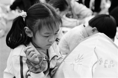 近日,在长兴县夹浦镇中心幼儿园“快乐亲子布艺风筝节”现场,家长和孩子一起穿针引线,用刺绣的方式装饰风筝。(本报通讯员 王伟红 许斌华 摄)