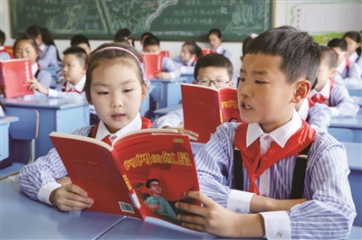▲5月23日,长兴县第四小学学生集体朗读革命英雄书籍,感受英雄的信仰、坚守与情怀。(本报通讯员 许斌华 摄)