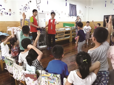 近日,宁波市职业技术教育中心学校制冷专业“志”冷爱心小队走进宁波市阳光科普幼儿园,为孩子们讲解空调的环保知识,同时还帮助幼儿园清洗了21台空调和25片滤网。在“六一”国际儿童节到来之际,这些来自职校的大哥哥大姐姐为孩子们送上了一份健康大礼。据悉,“志”冷爱心小队已连续3年为该幼儿园服务。 (本报通讯员 徐剑军 摄)