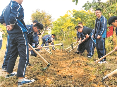 “田园社开荒种菜啦!”近日,长兴技师学院新成立的劳动实践社团——田园社成了学校的“网红”。社团成员接到的第一项任务是开垦食堂前的一块荒地。学生们捡碎石、除草、挖地、刨土……忙得不亦乐乎。学校党总支书记程再龙表示,成立田园社,重拾劳动教育,一方面是要在全校范围内营造崇尚劳动、尊重劳动、享受劳动的浓厚氛围,另一方面也让学生在劳作中收获幸福生活的能力。 (本报通讯员 柏芸芸 摄)