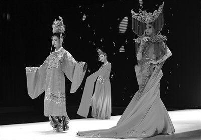 日前,浙江纺织服装职业技术学院举行了“融+”时尚周。其间,集中展示了该院时装、家纺、饰品、美术、彩妆、动漫、空间设计、智能交互、平面设计等专业2019届毕业生的6000多件原创时尚设计优秀作品。活动吸引了30余家企业前来开展业务交流和人才对接活动。图为学生展示时装设计作品。(本报通讯员 王国海 摄)