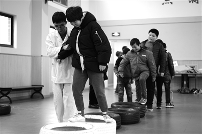 “慢一点,加油!”“大胆地拍球。”……近日,东阳市中医院儿童康复中心开展“医教结合”项目,为该市特殊儿童带去绘本故事讲解、认知教学、绘画手工、唱游律动、游戏活动课等丰富的活动内容。图为东阳市特殊教育学校特教班学生在接受康复训练。(本报通讯员 李 磊 邵丽婷 摄)