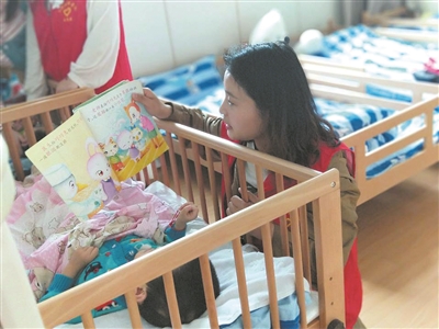 在“世界读书日”到来之际,长兴技师学院的志愿者们来到长兴寓健颐养护理中心,给孩子们读绘本。最让人感动的一幕是党员教师单膝跪地,给躺在床上的特殊孩子讲故事。这些特殊孩子因为身体和智力发展欠缺,只能常年躺着。“我们也想让他们体验和普通孩子一样听着爸爸妈妈讲故事慢慢入睡的感觉。”志愿者邵佳韵说。