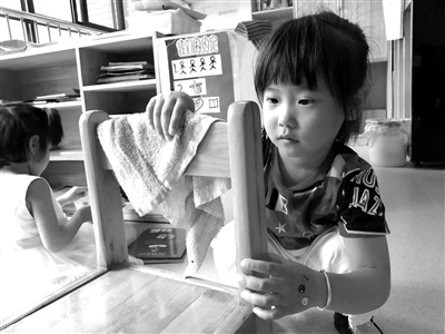 每周五,诸暨市浣江幼儿园教育集团的幼儿都会按照劳动计划清单,对教室、午睡室、盥洗室、走廊、户外等场地进行整理与打扫。图为该园城西园区的孩子正在认真打扫。