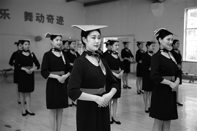 浙江广厦建设职业技术大学的空乘专业日前进入期末考试环节,74名大一学生身着准空乘制服,在考官面前进行职业形象展示。图为考评现场。