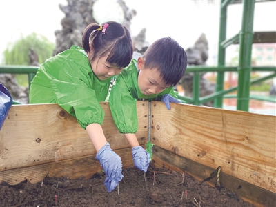 近日,建德市李家中心幼儿园的幼儿围绕堆肥展开了一系列探索。他们了解堆肥过程,收集堆肥材料,拿上堆肥工具去劳作,记录堆肥时间及情况,最终堆肥成功。图为该园幼儿正在测量堆肥箱中的温度。