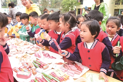 近日,建德市乾潭中心幼儿园开展“微型菜市场”实践体验活动。200多名中大班的孩子在10多个“摊位”前选购蔬菜、鱼肉等不同的农副产品,体验自主购物的乐趣。