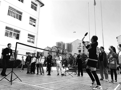 “扣杀!”“好球!”……在宁波市华天小学的校园里,每到课余时间,师生们总会挥动着嗒嗒球拍进行比赛。据悉,嗒嗒球的发明者是该校一名学生家长,它的最大优点是不受场地限制,室内户外均可展开,老少皆宜。目前嗒嗒球已获得国家发明专利。