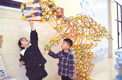 近期,缙云县博物馆展出了该县新区实验幼儿园萌娃们的作品。孩子们利用“万能工匠”的点、线、面、轴、齿轮等五大基本元素进行构思、想象,用插、拔、拧等方法制造出“歼击机”“鼓风机”“毛毛虫车”“大眼怪”“超级摩天轮”等30多件作品。