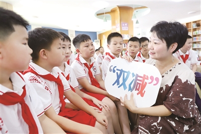 日前,绍兴市上虞区滨江小学开展了“‘双减’之下 向阳而生”的主题班会。师生就自己了解到的“双减”政策及在“双减”政策下如何调整学习生活展开交流。