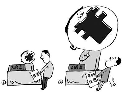 研究生招生考试期间,多地“考研房”价格随之暴涨,不少考生甚至遭强制退订。近年来,从“考研房”到“考公房”,“逢考必涨”的现象愈演愈烈。虽然酒店拥有自主定价权,但自主定价不意味着可以哄抬价格、任性涨价以攫取暴利。面对恶意涨价,相关职能部门有必要规范经营者的经营行为,规范市场秩序,保障广大考生合法权益。 (王 铎 绘)