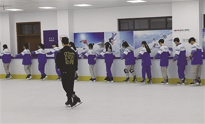 走进滑冰场,不似商场里的滑冰场那样有强烈的冷气袭来。原来,这是仿真冰面,由超高分子量聚乙烯材料制成,维护成本低,又能带给人与真冰场一样的滑冰乐趣。为了保证学生安全,学校还精心挑选滑冰鞋:速度滑冰的鞋,鞋尖上有锋利的冰刀,不能用;花样滑冰的鞋,鞋尖上有锯齿,也不能用。“我们最后选了冰球专业运动员用的滑冰鞋,钛合金材质,轻便结实,而且前后都是圆头的,最安全。”康川说。