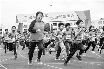 缙云县碧川小学近日举行校园马拉松比赛,全体师生及家长并肩开跑。图为比赛现场。