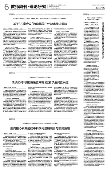 部编版小学语文教材设置了《快乐读书吧》栏目,此栏目能促进学生自主阅读,为学生阅读搭建了交流展示的平台。笔者探索《快乐读书吧》栏目教学策略,通过活用教材、迁移阅读、多方共读、图书漂流等途径,激发学生阅读兴趣,帮助他们养成良好的阅读习惯。