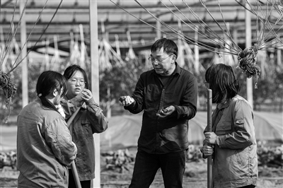 日前,在金华职业技术学院实验农场里,刚刚返校的大学生在教师的指导下体验劳作。实验农场里,不仅有现代化大棚,还有授课的教室,学生通过参与蔬菜水果的种植、养护、收获、售卖等全环节,学习现代农业技术技能。