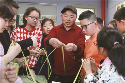 3月7日,武义县壶山小学教室热闹非凡,草编传承人吕金六指导学生制作棕榈叶玫瑰花,作为送给妈妈的礼物。吕金六专注于草编工艺40余年,他的作品都是用棕榈叶通过撕、折、绕等手法编织的,蒸熟、晾干后经久不坏。学校每周五设有草编课程,学生学习草编兴致浓郁。