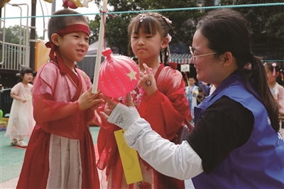 近日,嘉兴市南湖区代代康紫景雅苑幼儿园组织了“巧手制作,废旧物品焕新机”活动。在社区新时代文明实践站工作人员的指导下,幼儿们对搜集来的废旧物品进行了各种各样的改造。图为幼儿们展示利用废旧塑料瓶制作的灯笼。(本报通讯员 赵丽萍 摄)