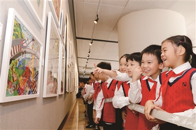 孩子们在这些大舞台上自由展示才艺、表达感悟。他们的作品有的刊登在《小学生时代·快乐美术》杂志上、出现在“小学生时代”微信公众号里,有的被放进了展览馆供人们参观欣赏。“我浙五年——小学生眼里‘砥砺奋进的五年’”书画大赛的部分精选作品在浙江省博物馆武林馆二楼展览,观者如潮,多家省市主流媒体纷纷报道,引起热烈反响。《浙江日报》“庆祝建党100周年七一特刊”用一整版的篇幅选登了“百年筑梦,畅想现代化”浙江省中小学生美术作品(书画)大赛的部分优秀作品。