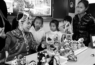 武义县新宅镇中心小学本学期邀请畲族非遗传承人蓝晓燕进校开设刺绣手工艺课。刺绣手工艺课每周二开课,学生们在蓝晓燕的指导下,逐渐了解和掌握畲绣,传承非遗文化。(本报通讯员 张建成 李云升 摄)