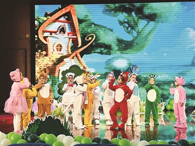 ①衢州市柯城区七彩桥幼儿园幼儿正在表演双语绘本剧。