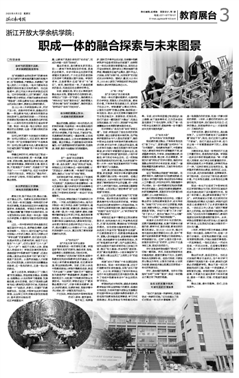 当“构建服务全民终身学习的教育体系”成为新时代教育高质量发展的战略方针,当“职普融通、产教融合、科教融汇”被写入党的二十大报告,一场关于教育形态重塑的深刻变革正在悄然展开。在这股浪潮中,浙江开放大学余杭学院应运而生。它并非传统意义上的“新建校”,而是带着中职办学积淀、怀揣开放教育使命的“转型者”,在职业教育与成人教育深度融合的未知之境中,勇敢迈出探索的脚步。