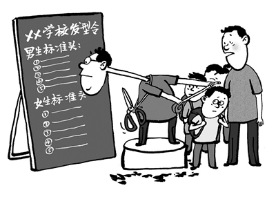 随着新学期的到来,一些学校的发型规定再次成为舆论焦点。“一刀切”的发型管理,令部分学生和家长感到困扰。有家长反映,开学第一周,孩子头发剪了两次还不过关。事实上,发型管理本可以有更灵活的解决方案。《中学生日常行为规范》规定学生需“穿戴整洁、朴素大方,不烫发,不染发,不化妆,不佩戴首饰,男生不留长发,女生不穿高跟鞋”,其中并未对发型长度提出硬性要求。就现实而言,与其用统一发型束缚学生,不如以“整洁大方、不影响他人”为底线,取代僵化的规定。 (王 铎 绘)