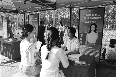 10月15日,浙江工商大学2026届毕业生秋季综合招聘会在该校下沙校区举行。招聘会开辟朋辈咨询区,由一批在求职、深造、创业等方面表现突出的学生担任“就业领跑员”,现场提供个性化咨询服务。