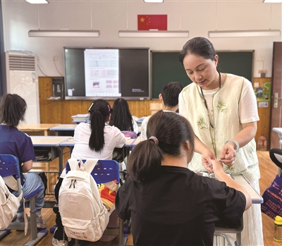 她能读懂小悦看似无意义的行为。对话时只能说出两到三个字的小悦总是令人难以沟通,但徐丽君学会了“倾听”她的动作。有一次,小悦急切地抢夺透明胶,反复说着“写字”。徐丽君蹲下身,顺着她手指的方向看向展示栏。“贴上去吗?”徐丽君问,小悦脸上的焦躁瞬间化为期待的微笑。作业贴上展示栏后,小悦安静而满足地回到座位。