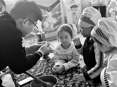 10月23日,义乌市国贸幼儿园邀请市级非遗吹糖技艺代表性传承人楼永先以“家长助教”的身份走进校园,为幼儿们带来了一堂非遗文化启蒙课。楼师傅将熬制好的麦芽糖块揉、捏、拉、吹,短短几秒就把造型各异的各式动植物栩栩如生地呈现出来。幼儿们纷纷上前体验这项传统技艺的乐趣与魅力。