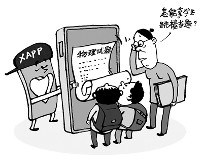 近日,有网友反映作业帮平台出现涉及学生跳楼的物理题目,引发社会广泛批评。此类内容不仅暴露出平台审核机制的疏漏,更折射出其价值导向的偏差。此事件绝非简单的题目设计失误,而是一次深刻的警示:教育无小事,技术当以人文为底色,流量须以责任为边界。相关平台应引以为戒,将伦理审核纳入内容生产的关键流程,守住教育领域的责任底线。(王 铎 绘)