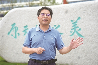 2022年学校迁入新校区,周晓天借此时机重塑了文化符号。新校徽以太阳轨迹为灵感,校训“原天地之美,达万物之理”则取自《庄子》。漫步校园,周晓天为记者讲述着风景背后的巧思。天地大美不言,而此间的每一处风景,都在进行一场无声的教化。
