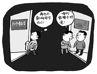 近日,广西一所高校因计划开设“打呼噜宿舍”引发热议。不少网友称赞这一举措“人性化”。高校在管理中能关注到学生睡眠质量这一具体需求,并尝试以灵活的方式解决,体现了管理上的细致与温情。学校是学生成长的重要场所,这种“小而具体”的关怀,往往比宏大的口号更能让学生感受到被重视。从“考研自习室”“共享厨房”到“打呼噜宿舍”……期待越来越多更灵活的政策、更贴近人心的服务,让大学校园真正成为学生的“温暖港湾”。