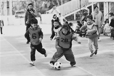 11月18日,为提升幼儿身体素质、培养团队协作意识,桐乡市实验幼儿教育集团实验幼儿园组织足球比赛。图为比赛现场。