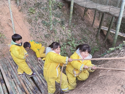 “教师应以旁观者的身份观察幼儿的游戏过程,最大程度地放手,最小程度地介入。”园长谢雪莉对“安吉游戏”的教育理念深有体会。据她介绍,幼儿园在“安吉游戏”精神的引领下,用4年时间将园旁1580平方米的原生态竹林打造成幼儿自主游戏的乐园,并依据幼儿的年龄、能力及兴趣不同,开设了涵盖劳动、运动、游戏和休闲的多样化竹林游戏活动。