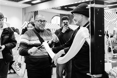 近日,浙江越秀外国语学院举办首届“非遗进校园”品牌活动,将20余项非物质文化遗产项目搬进学校,为师生带来沉浸式的传统文化体验。图为该校留学生和外教参与活动。