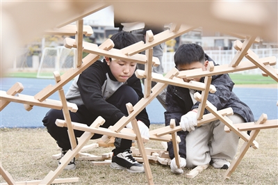 本学期,浙江师范大学附属绍兴镜湖小学开设了“工程科普”综合实践课程,旨在让学生从自身体验出发学习建筑、桥梁等相关工程结构知识,并尝试学以致用。图为日前学生利用房屋穹顶互承结构原理为盆栽搭建过冬暖棚。