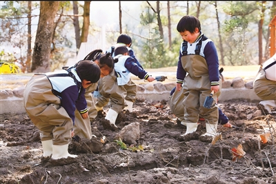 三合镇中心幼儿园坐落在田野之间,得天独厚的自然资源成为课程建设的宝库。幼儿园推倒围墙,将门前的田埂纳入幼儿的游戏空间,还开辟了名为“粟园”的种植园,让劳动教育融入幼儿一日生活。春天,幼儿们挎着篮子、带着画本去田埂采风;夏天,幼儿们采摘蔬果,制作扎染作品;秋天,幼儿们收集落叶,创作拼贴画……在与自然的亲密互动中,爱自然、爱劳动的种子在他们心中扎下根。