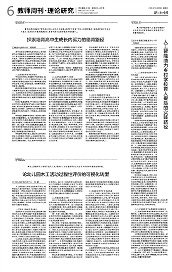 在教育数字化和乡村振兴的大背景下,乡村学校育人质量的提升面临着很大挑战。传统的评价方式难以全面反映学生的素质发展,而新兴的人工智能工具若仅停留在数据记录层面,则无法将数据转化为证据链,且评价与学生素养提升脱节。本文以金华市婺城区雅畈镇中心小学为例,探索人工智能助力乡村学校育人提质的可行路径。