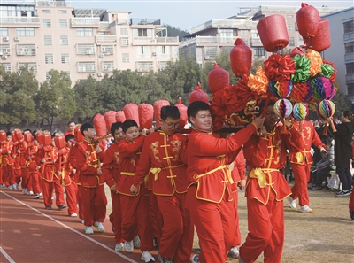 日前,义乌市义亭镇义亭小学举行第三届非物质文化遗产节。板凳龙作为非遗节的保留节目率先亮相。传统的板凳龙从头到尾连成一体,体积较大,转弯时易形成危险角度。为此,学校对表演形式进行了调整:每个班级分到一条板凳,由各班自主设计装饰,并推选一名学生参与舞龙。此外,还有学生负责敲锣、举牌、迎旗及迎龙灯等任务。本次“龙灯秀”共有81名学生参与。(本报通讯员 朱 伟 龚琴娟 摄)