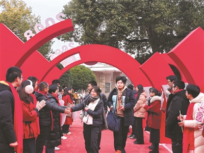 1月6日至8日,我省举行选考和学考,全省近64万名考生走进考场。本次考试全省共设77个考区、351个考点、近6.5万个考场。根据安排,本次选考和学考在3天时间内开考10个场次。图为金华市外国语学校教师与考生击掌,为他们加油。