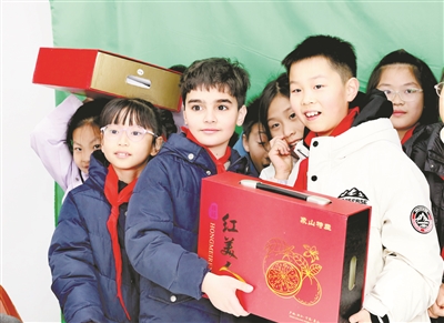 1月7日,宁波市北仑区大碶博平小学组织学生走进宁波职业技术大学,开启一场特殊的职业体验之旅。学生们在大哥哥大姐姐的带领下,参观了智慧物流、直播带货等职业体验区,直观感受线上流量与线下物流协作的魅力。图为在直播带货体验区,学生们化身“小主播”,对着镜头热情地介绍商品。