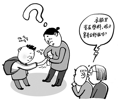 近日,内蒙古某小学冬季校服夹层中扯出薄膜状物质,引发家长对孩子健康的担忧。相关部门迅速响应并开展调查处置,这一及时应对值得肯定。然而,公众不仅期待相关事件能得到妥善处理,更迫切要求对校服生产、采购及质检的全链条开展系统性审查与改革。守护儿童用品安全,须从亡羊补牢转向未雨绸缪,要以制度设计替代被动应对,推动阳光采购落地,落实双重送检,建立全周期溯源体系,完善黑名单动态管理,实现儿童用品安全全流程监管。 (王 铎 绘)