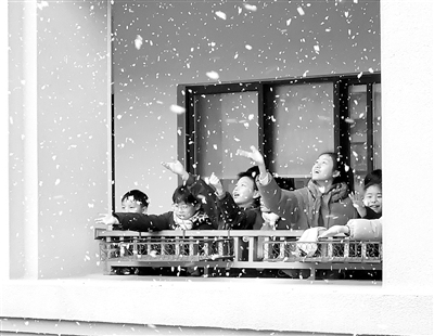 1月20日清晨,浙江多地迎来了今冬第一场雪。课间时分,平湖市叔同小学的学生纷纷走出教室,来到长廊上赏雪。