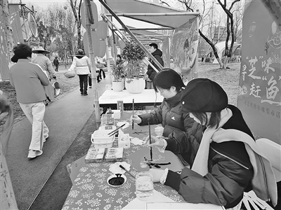 20分钟后,何思琪的双手冻得通红,王寅彪赶忙递上充电暖手宝。“学生不仅要学笔法技法和构图,也要懂得群众需求,才能创作出喜闻乐见的艺术作品。”王寅彪说,“将写福送福活动作为寒假作业,把课堂搬到集市,既是学生专业技能的实战练兵,也是高校优质艺术资源下沉基层、服务地方发展的有益尝试。”