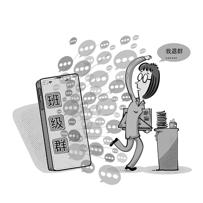 近日,辽宁省葫芦岛市推动班主任退出班级群,引发社会广泛关注。近年来,许多家校矛盾频发于微信群、QQ群等线上沟通平台,多地教育部门针对家长群乱象出台管理规定,但治理效果有限。当地推动班主任和科任教师退出家长群,改由教务人员入群统一管理,旨在规范家校沟通流程,减轻教师的非教学事务负担。这一举措不失为一条值得探索的破局路径。但需清醒地认识到,退群并非治本之策,要真正化解家校矛盾,仍需学校、家庭与社会三方协同发力。唯有各归其位、各司其职,才能构建健康有序的教育生态。(邱 炯 绘)