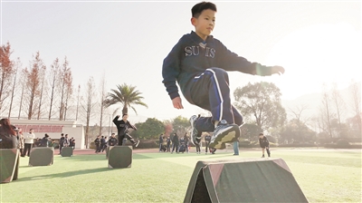 新学期以来,温州森马协和学校小学部把每天30分钟的传统大课间改成“跑步+趣味活动”。跑步部分实行一年级400米、二至四年级800米、五至六年级1200米,趣味活动包括单人并脚跳、双人合作跳、“8”字跳、打地鼠、同心鼓、丢沙包、仰卧起坐、平板支撑、两人三足、跳障碍等,让学生在阳光下肆意奔跑、尽情游戏。