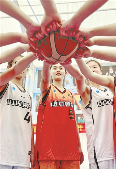 篮球成为山口镇中的精神符号。学校里每个学生都有一只篮球,每周一节篮球课。班班有球队,年年有比赛。男孩女孩们都会在课间跑到操场上打一会儿球。“顽强拼搏,永不言弃”,这不仅是赛场精神,更是这所乡镇中学的育人底色。